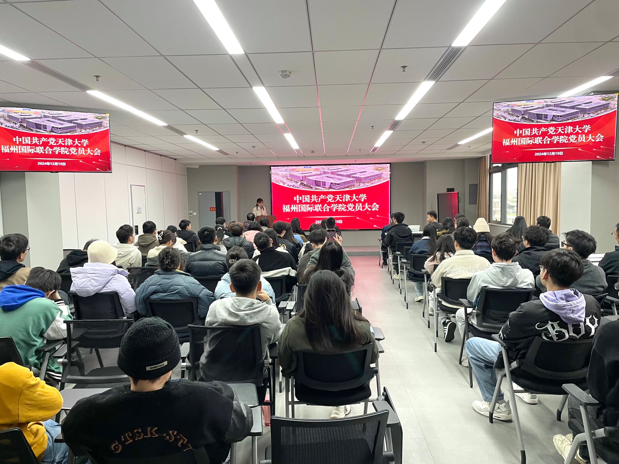 (通讯员:陈浩)2024年12月19日,中共天津大学福州国际联合学院党员大会在名师讲堂顺利召开,学院师生党员共计70余人参加大会,会议由学院党委副书记马海燕主持。