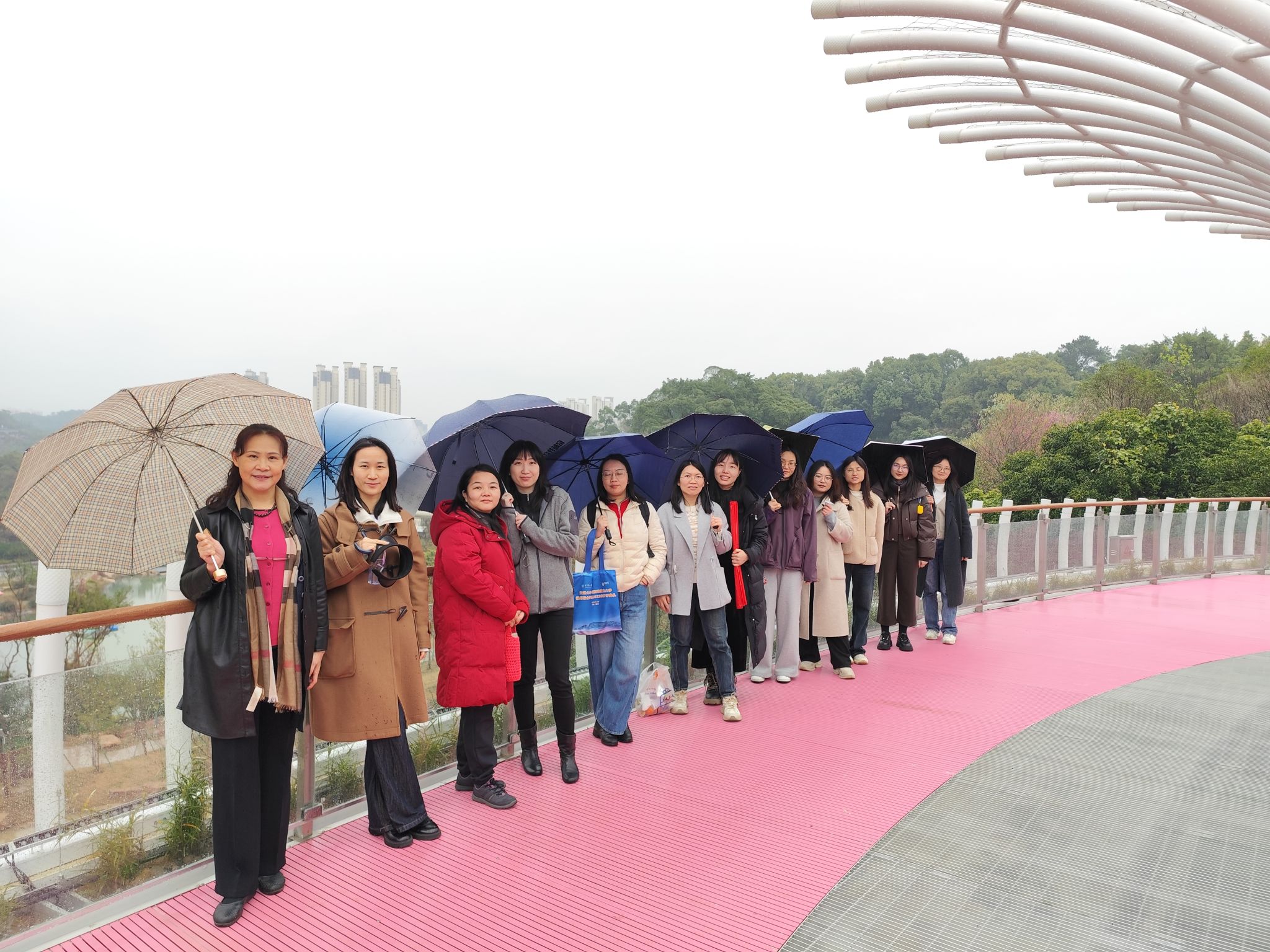 当天下午,细雨朦胧,全体女教职工一行走进福州市三江口植物园,从湖畔步道到兰花幽境,大家沉浸欣赏闽台特色植物与活化石群落,用镜头定格兰花的风姿与自然的诗意。活动中,大家或驻足观赏百花争艳的盛景,或在兰花温室感受艺术与生态的完美融合,欢声笑语间尽显新时代巾帼风采。活动结束后,女教职工们纷纷表示,这场“雨中行”不仅让大家体验到自然之美,更在携手同行中感受到集体的蓬勃力量。