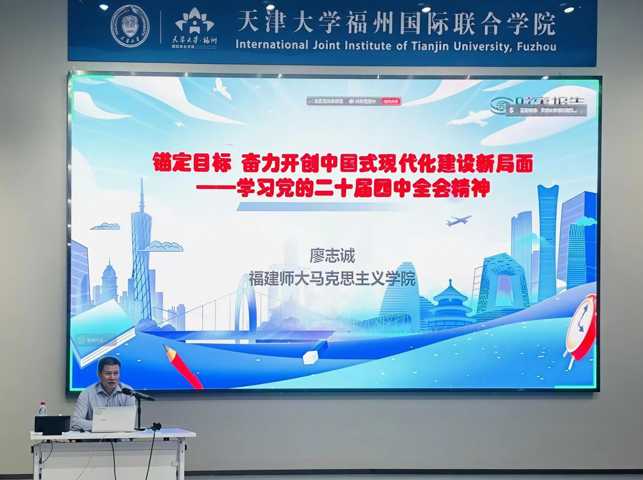 为深入学习领会、全面准确把握党的二十届四中全会精神,推动全会精神入脑入心,指导实践发展,11月10日,福州学院党委在学院报告厅举办学习贯彻党的二十届四中全会精神专题报告会,并邀请福建师范大学马克思主义学院廖志诚教授作专题辅导报告,学院全体师生党员、入党积极分子、入党申请人共300余人参加会议。会议由党委书记李静松主持。