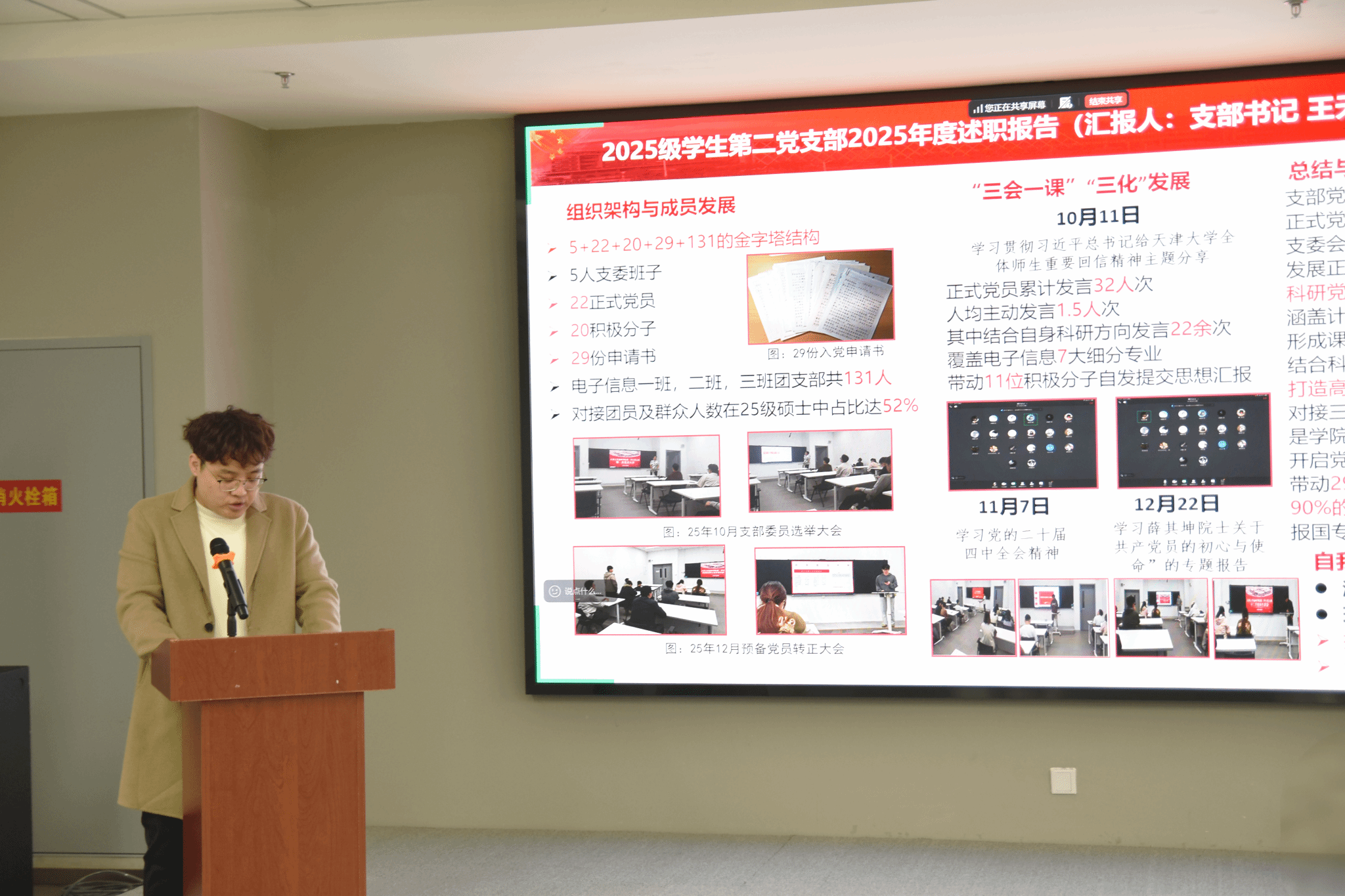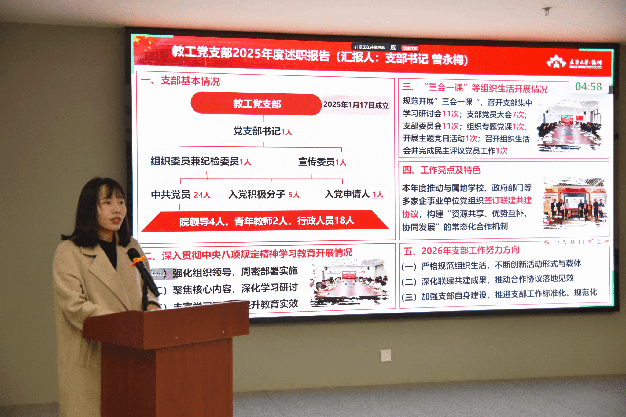 本次会议以“述”亮绩、以“评”促干,实现了党建责任的有效传导和工作经验的交流互鉴,取得积极成效,为学院2026年基层党建工作的系统谋划与高效开展奠定了坚实基础。