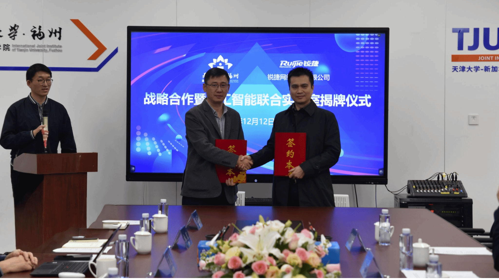 截至目前,福州学院与省市区各企事业单位开展了广泛深入的交流合作,与福建医科大学附属第一医院、福建省水投数字科技有限公司、锐捷网络股份有限公司、永荣股份有限公司、新创锦纶实业有限公司、福建省特种设备检验研究院、新博研桥医药科技有限公司以及长乐区人民政府、晋江市人民政府等签署各类校企、校地合作协议共26份。其中,与锐捷网络联合共建“人工智能联合实验室”,与福建省电子信息集团共建“半导体材料(电子新材料)重点科研基地”,与晋江市人民政府共建“城市空间”联合研究中心。同时,福州学院作为人才链“链主”加入福建光电“四链”融合发展创新联合体。