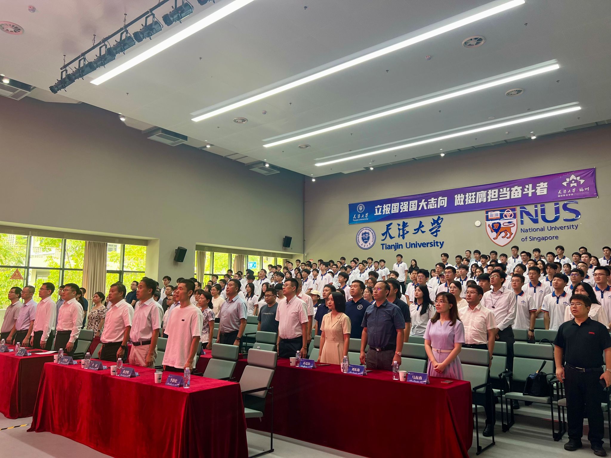此外,福州学院还在4间教室设线下分会场,并在新加坡国立大学设置线上分会场,同步开展典礼活动,共同庆祝新生入学这一重要时刻。