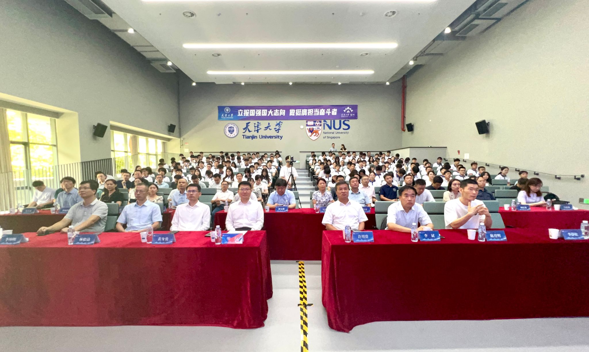 新加坡国立大学名誉常务副校长赖载兴在致辞中对新入学的同学们表示亲切问候,对福建省及福州市多年来给予天大-新国大合作项目的坚定支持致以衷心感谢,期待与各方继续紧密合作,也希望更多的毕业生能扎根福建,为当地经济和社会发展添砖加瓦,深化国际合作的紧密关系。