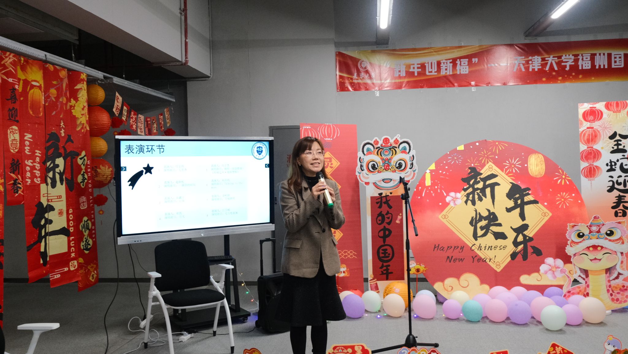 活动伊始,福州学院党委副书记、副院长马海燕满怀深情地向同学们送上诚挚的新年祝福,鼓励同学们继续秉持严谨治学的态度和勇于创新的精神,在学术研究上取得优异成绩,在个人成长上实现更大突破。在马院长温暖的祝福中,本次元旦联欢会拉开精彩序幕。