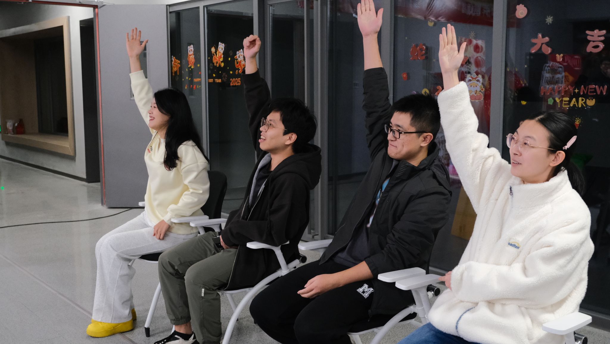 联欢会上,精彩好戏连台登场。“天福王”知识问答赛现场气氛热烈非凡,在紧张的角逐过程中,同学们不仅充分展现了自身扎实的知识储备,更在轻松愉快的氛围中加深了对天大校史的了解;抢椅子大比拼环节妙趣横生、活力四溢,将现场氛围推向高潮。