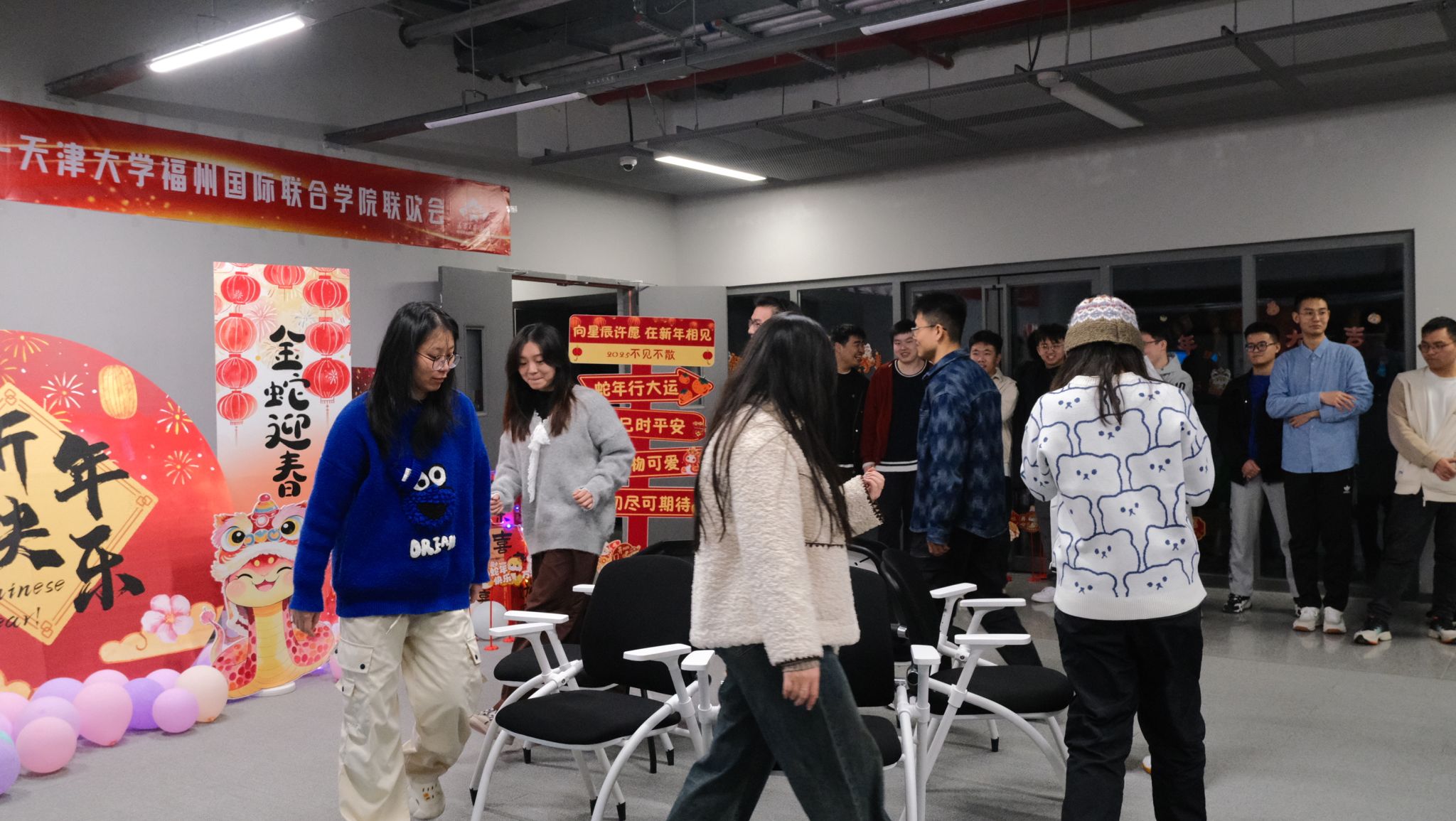 (通讯员:严雪琴)12月27日,福州学院一站式学生社区内张灯结彩、喜气洋洋,在这岁序更替、华章日新的美好时刻,一场充满活力与温情的元旦联欢会热闹开启。同学们怀揣着对过去一学期的满满回忆和对新一年的无限憧憬,以青春之名、用欢乐之声,共同奏响了辞旧迎新的旋律,开启了这场别具一格的元旦联欢会,为校园注入了浓郁的节日氛围与蓬勃的朝气。