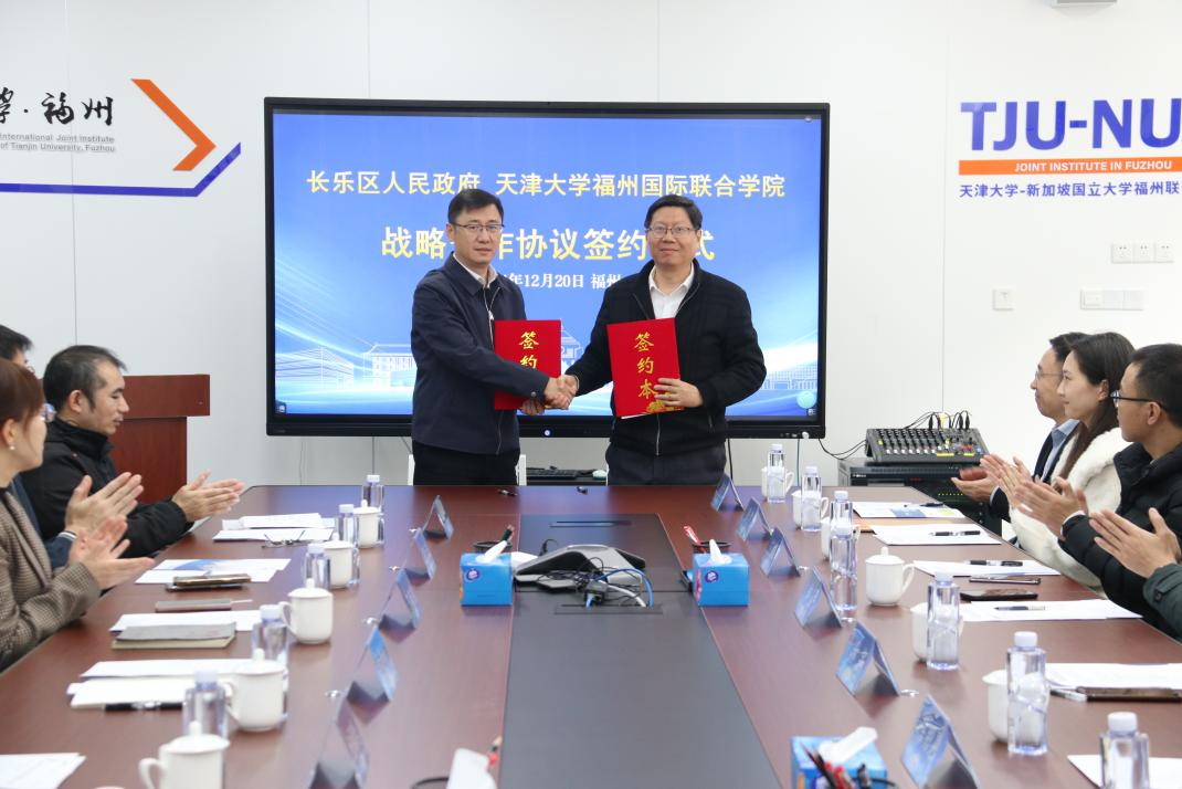 会上,林宇和李静松代表双方签署了《天津大学福州国际联合学院与长乐区人民政府战略合作框架协议》。此次签约,标志着福州学院和长乐区的合作进入全方位、多维度、深层次的新阶段。林宇在致辞中指出,长乐区正加速传统产业转型与新兴产业发展,此次签约将利用天津大学和福州学院优势,推动产学研融合,助力产业升级与科技创新,为区域发展注入新动力。李静松在致辞中强调,福州学院将以此次签约为契机,认真细化落实双方合作协议内容,切实发挥自身学科、人才、科技等资源优势,全面深化与长乐区各领域合作,广泛参与长乐经济社会建设,积极助力长乐产业转型和高质量发展。