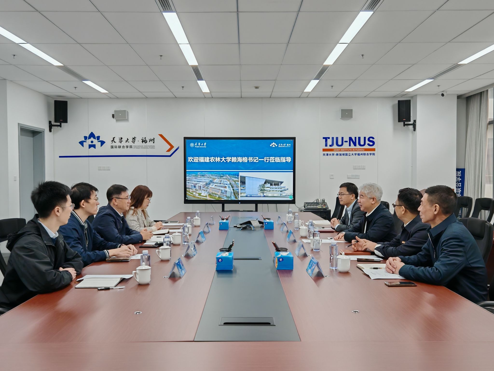 1月24日,福建农林大学党委书记赖海榕一行到天津大学福州国际联合学院(以下简称福州学院)调研,福州学院党委书记李静松及有关负责同志陪同调研并参加座谈。