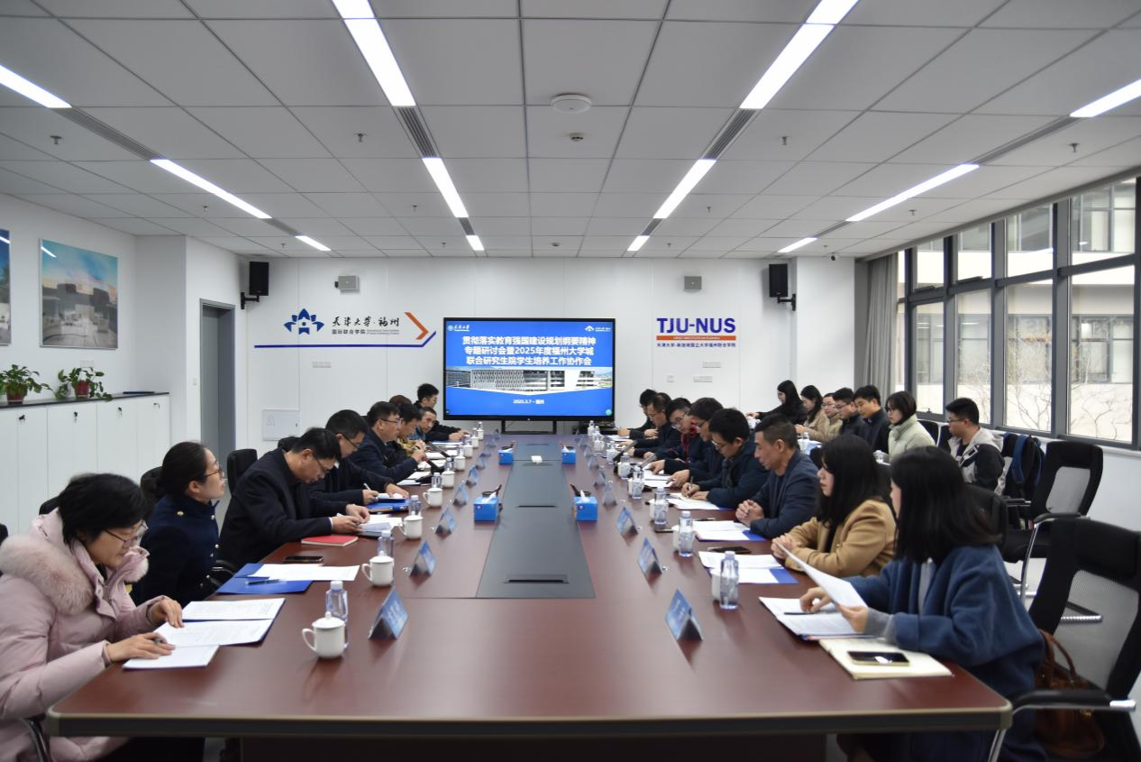 (通讯员:李悦)3月7日上午,贯彻落实教育强国建设规划纲要精神专题研讨会暨福州大学城联合研究生院(简称联合研究生院)2025年工作协作会在天津大学福州国际联合学院(简称福州学院)召开。本次会议旨在深入贯彻落实教育强国战略,推进联合研究生院建设,深化研究生联合培养机制,提高人才培养质量。福建省教育厅、福州市教育局相关处室以及天津大学、福州大学、福建师范大学、福建农林大学研究生院及部分学院代表30余人出席会议。