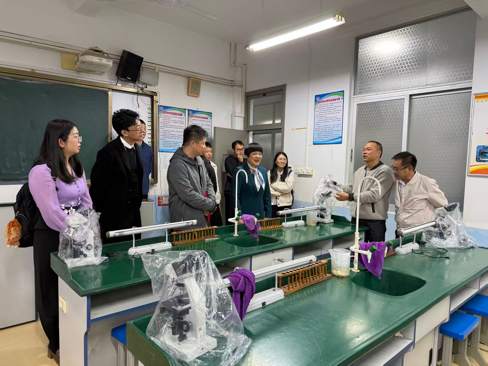 在长乐一中,福州学院专家团实地调研了实验室设施设备与学生科学类课程开展情况。随后,在座谈会上与各学科组长,围绕教学创新与科创竞赛指导等议题展开了深入讨论。长乐一中校长陈明强介绍了学校在科学教育课程建设、实验教学改革及学生创新培养等方面的实践成效。针对学校实际需求,我院专家团提出了精准务实的建议,表示应立足学校特色,通过开展前沿讲座、专题报告及依托高校资源组织访学等方式,进一步提升学校科学教育的广度与深度。同时,就如何平衡基础知识教学与科技前沿引入、强化学生理论根基等方面分享了专业见解。