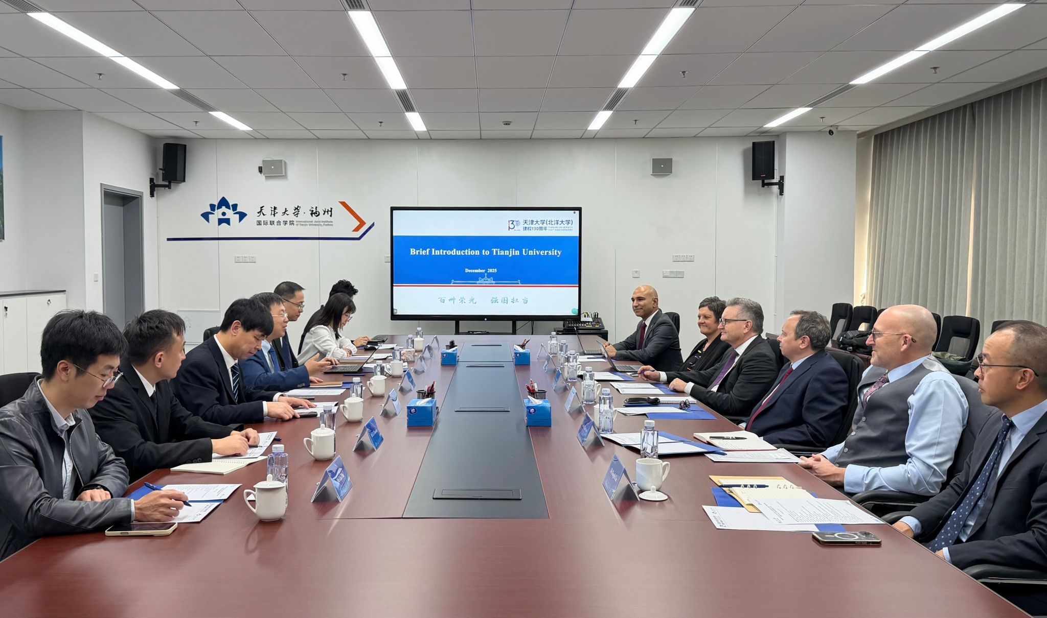 12月1日,英国卡迪夫大学副校长Gavin Shaddick率代表团访问天津大学福州国际联合学院(以下简称福州学院)。天津大学校长助理、福州学院院长黄辉会见来宾。天津大学国际合作与交流处及电气自动化与信息工程学院有关负责人陪同会见。