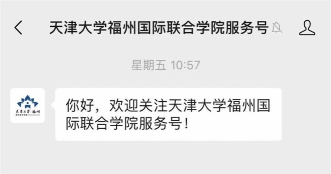 1.微信关注“天津大学福州国际联合学院服务号”。