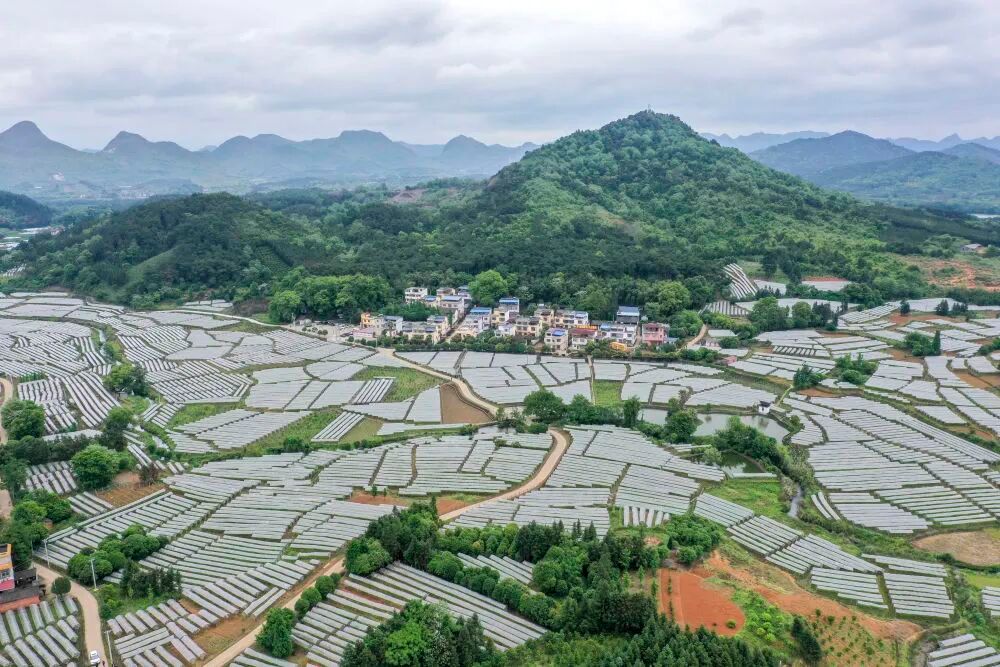 这是2021年4月25日拍摄的广西桂林市全州县才湾镇毛竹山村(无人机照片)。新华社记者 曹祎铭 摄