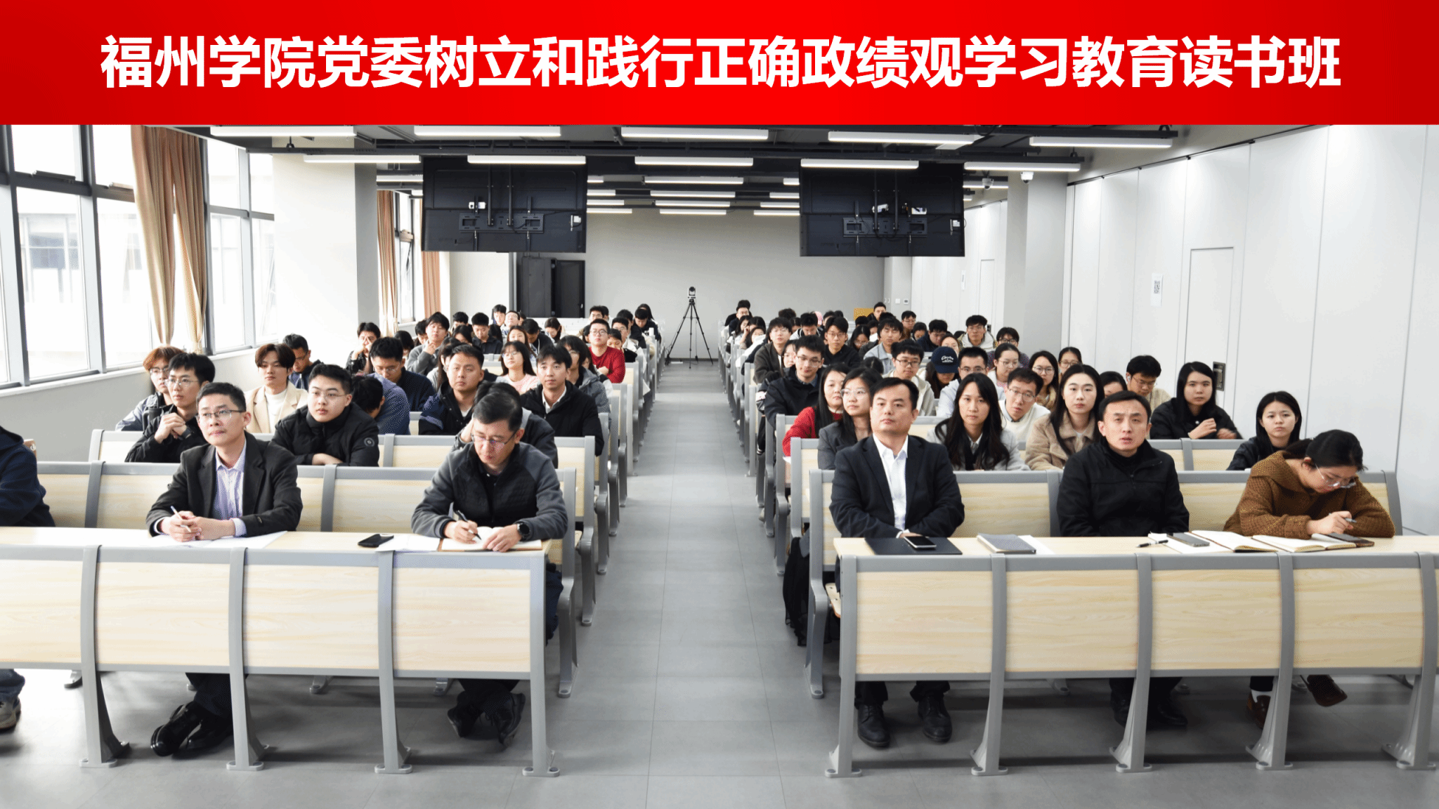 为深入学习习近平总书记关于树立和践行正确政绩观的重要论述,推动树立和践行正确政绩观学习教育走深走实,3月19日下午,福州学院党委举办学习教育读书班,学院党委理论学习中心组成员、党委委员及全体师生党员参加学习,学校学习教育督导组成员翟慧莲、杨漫路列席会议,会议由党委书记李静松主持。