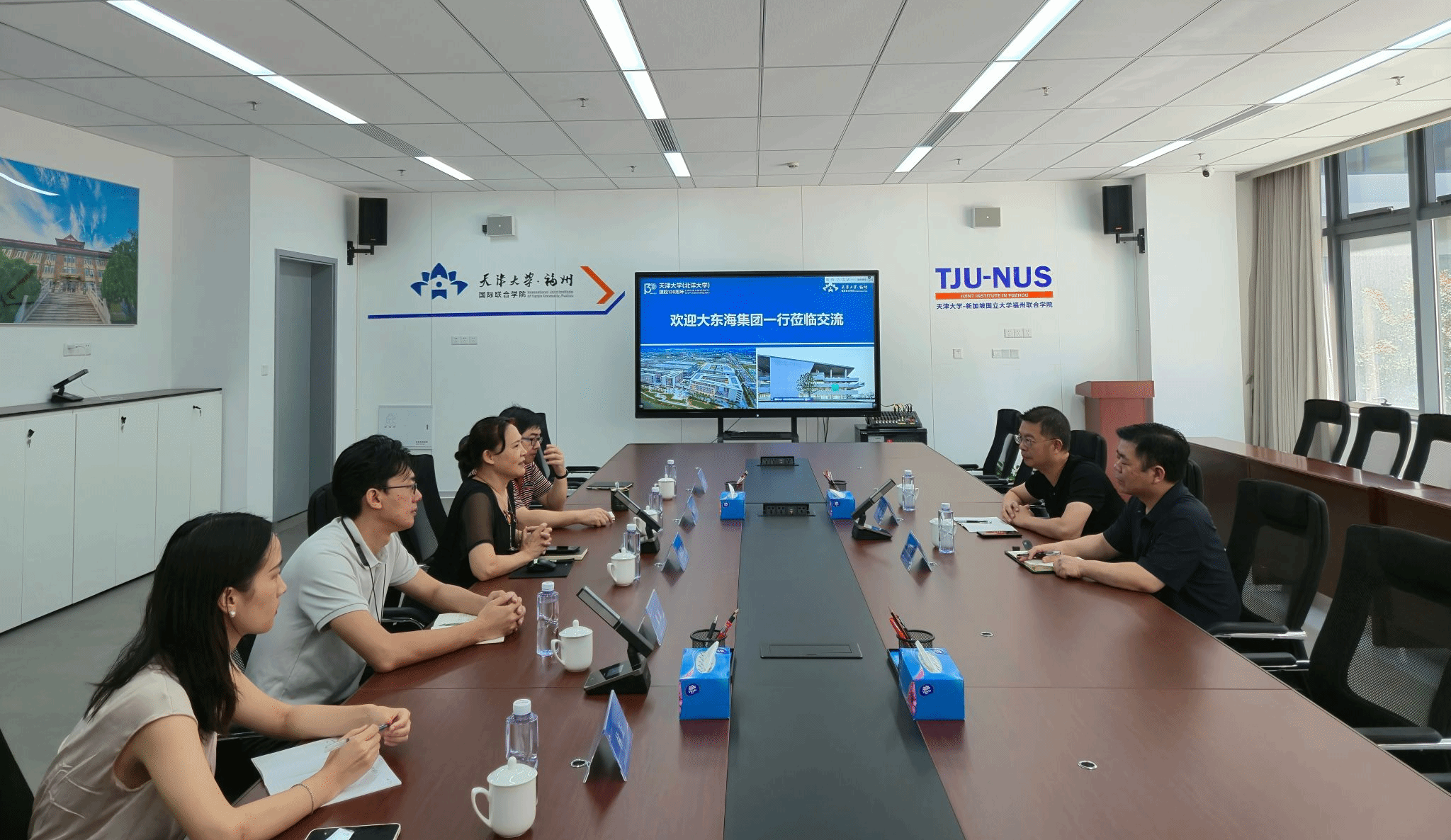 7月30日上午,大东海集团人力资源部部长林忠、技术研发部部长林承江一行到访天津大学福州国际联合学院(以下简称福州学院)。福州学院副院长杨福玲接待来访嘉宾,合作与培训办公室、分析测试中心、人事与科研管理部相关负责人参加交流。