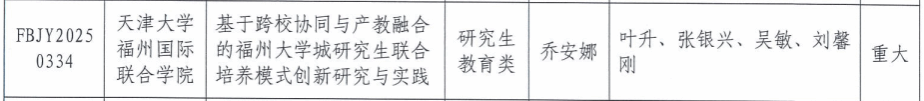 近日,福建省教育厅印发《关于公布2025年本科高校教育教学研究项目立项名单的通知》,我院福州大学城联合研究生院专项导师乔安娜教授、李彬副教授主持的研究生教育类项目分别获批省级重大立项与一般立项。这是我院首次参与该项目的申请,项目选题聚焦福州大学城联合研究生院研究生联合培养改革,旨在通过整合区域优质教育资源,构建高水平的校地协同育人机制,从而为地方经济发展培养更多高层次专业人才。