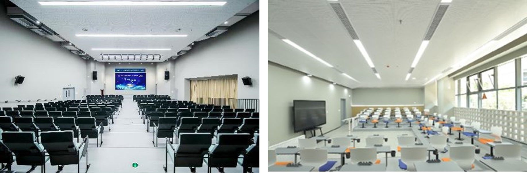 福州国际校区占地2010亩,现已建成一期项目占地面积约182亩,总建筑面积约13.9万平方米,配备一流的教学、科研及生活设施。学生宿舍内配有独立卫生间及浴室、空调、桌椅和衣柜。宿舍楼内生活配套设施齐全,配备食堂、超市、一站式服务中心、洗衣房、医务室等。校区内配有标准操场、篮球场、健身房、瑜伽室等体育设施,以满足多样化的生活需求。教学楼内配有智慧教室、报告厅、自习室、交流室等。实验楼内设有专用实验室、公共实验室以及学生办公区,并设有分析测试中心、大型仪器平台。